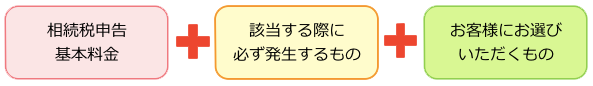 川越相続相談センターでは、以下の3つのサポートの合計が料金となる選択料金制を取っており、お客様のご要望やご予算に合わせた料金設定が可能となっております。